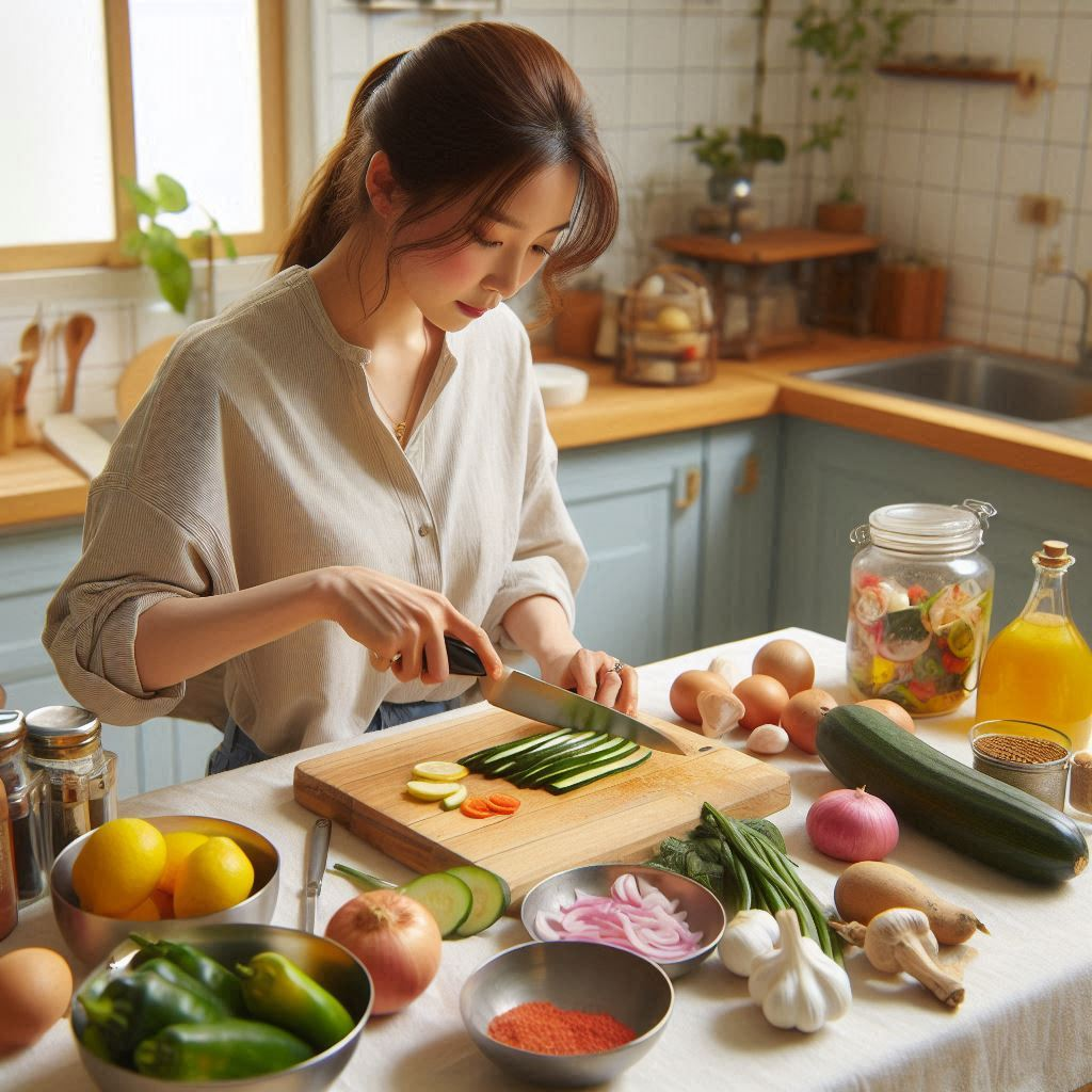 그 다음에는 무와 두부를 손질합니다. 무는 얇고 길게 썰어주고, 두부는 깍둑썰기로 자릅니다. 대파와 청양고추는 송송 썰고, 마늘과 생강은 다져놓습니다. 이 과정을 통해 모든 재료가